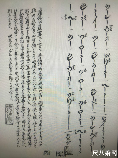 上图 尺八谱【虚铃】有台湾尺八协会老师 吴周城提供